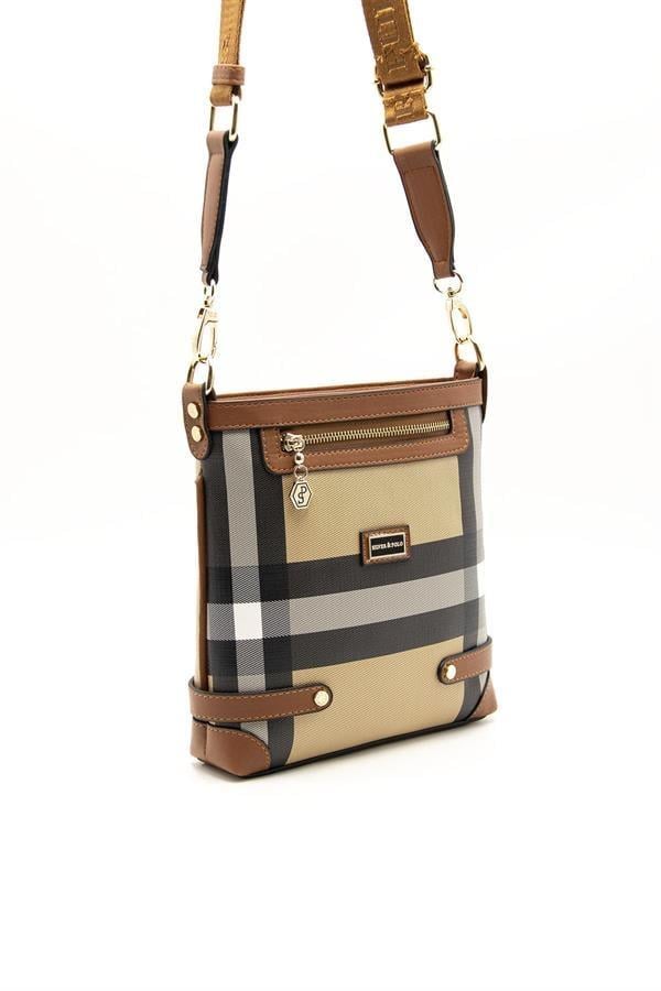 Silver & Polo SP1120 Kadın Çapraz Çanta Ekose Bej-Taba