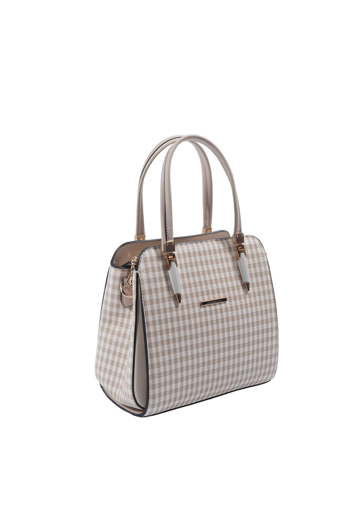 Silver & Polo SP1136 Kadın El Çantası Ekose Line Kare Kum Beji