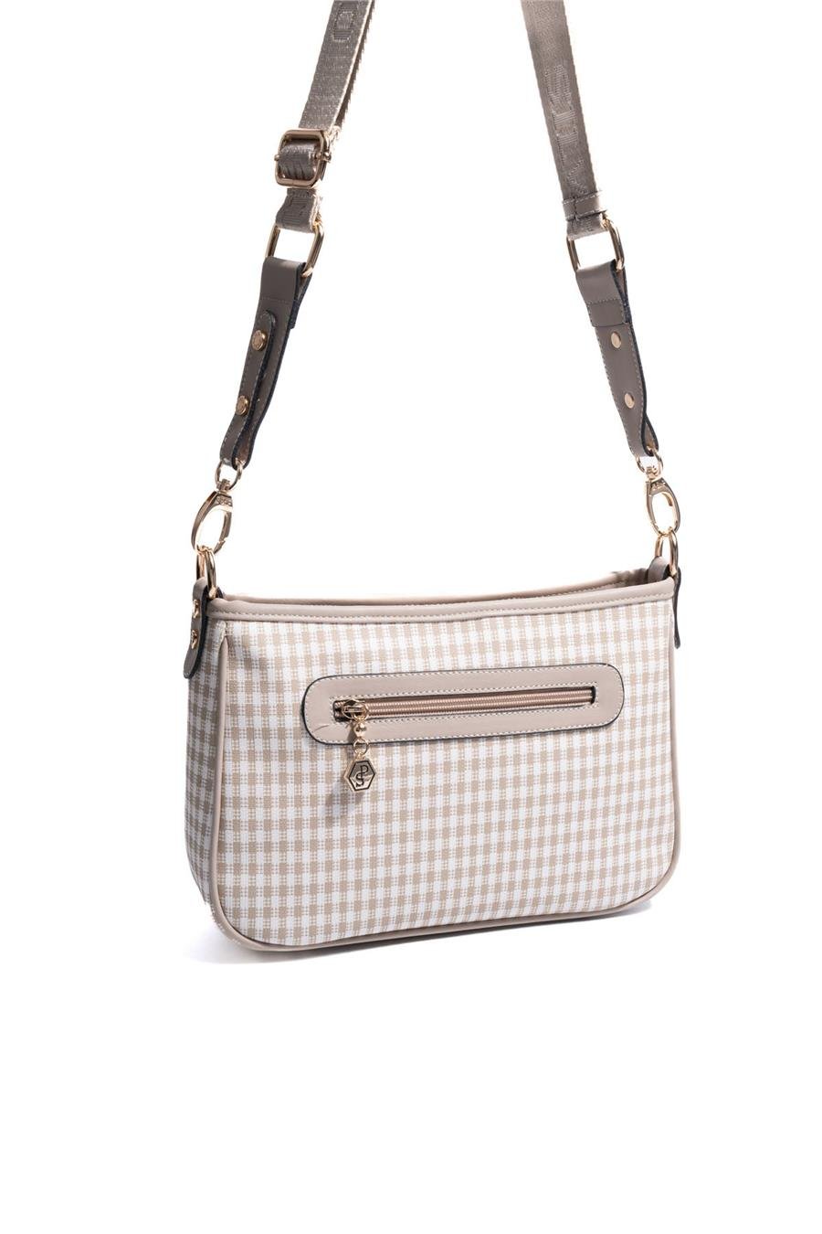 Silver & Polo SP1160 Kadın Çapraz Çanta Ekose Line Kare Kum Beji-Kum