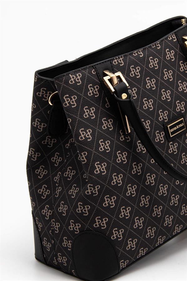 Silver & Polo SP667 Kadın El Çantası Monogram Füme-Siyah