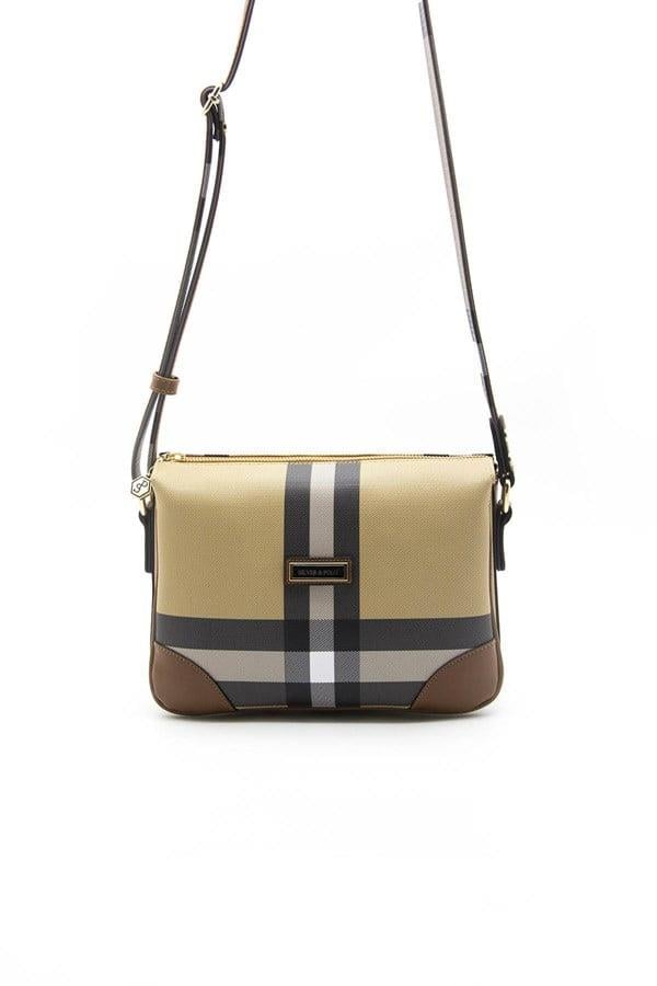 Silver & Polo SP784 Kadın Çapraz Çanta Ekose Bej-Taba