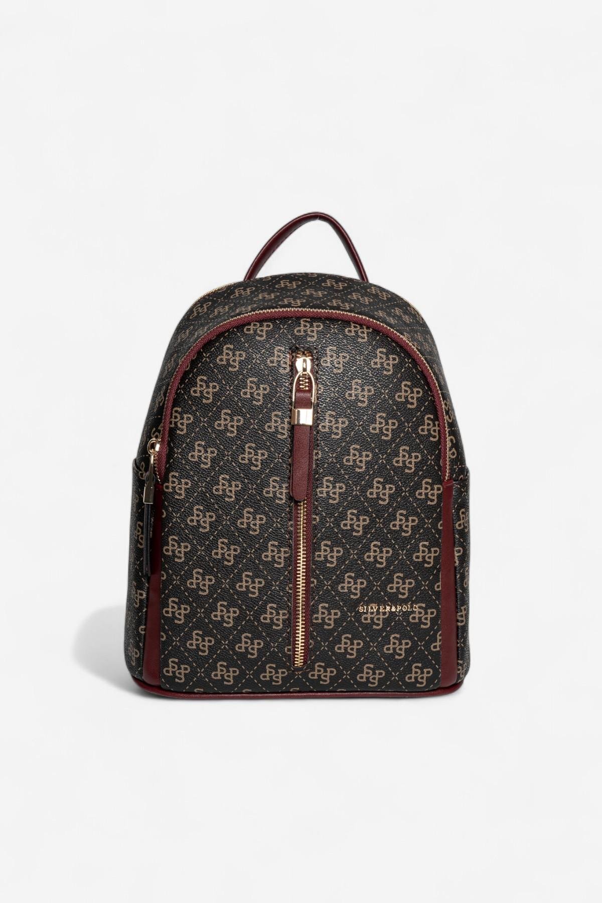 Silver & Polo SP901 Kadın Sırt Çantası Monogram Kahve Sarı-Bordo