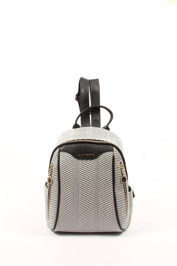 Silver & Polo SP906 Kadın Sırt Çantası Hasır Siyah Beyaz-Siyah