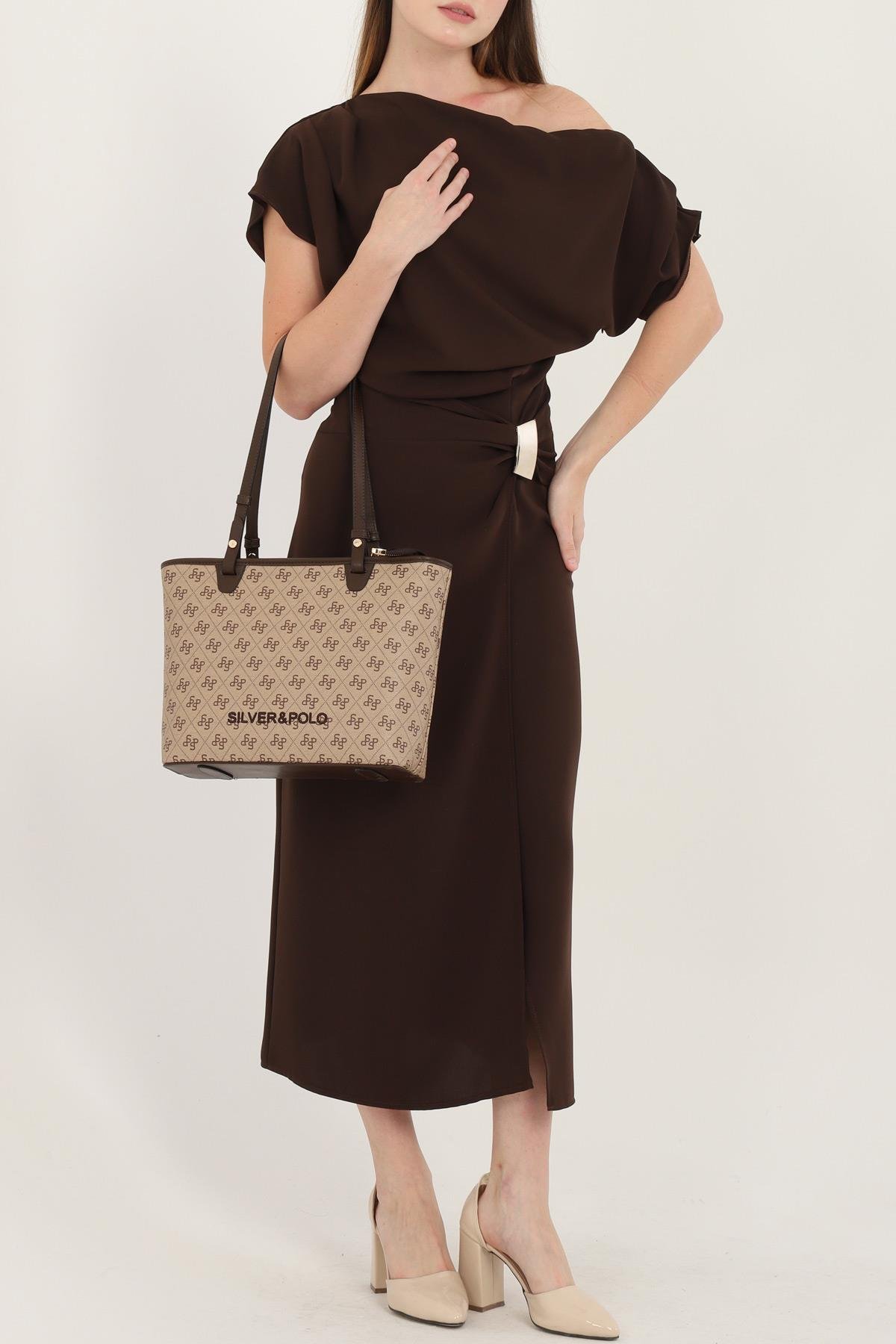 Silver & Polo Koyu Bej - Kahve SP1204 Kadın Omuz Çantası