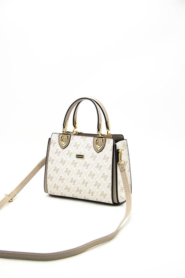 Silver & Polo SP1133 Kadın El Çantası Monogram Bej-Kum